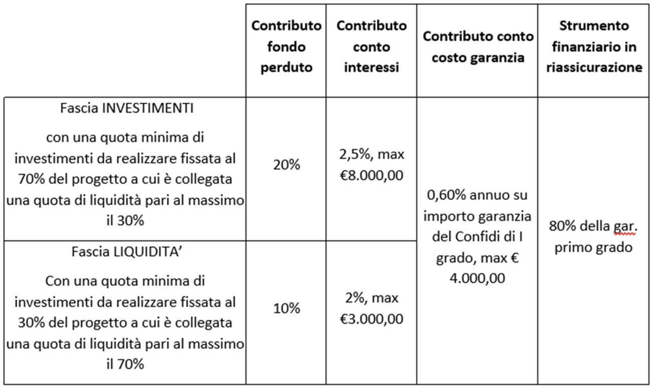 - per la Fascia INVESTIMENTI: un contributo a fondo perduto pari al 20%;